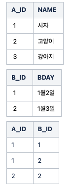 A,B,C테이블을 가정할 떄,