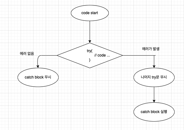 - 에러가 없다면, try 안의 마지막 줄까지 실행되고, catch 블록은 건너뜁니다.