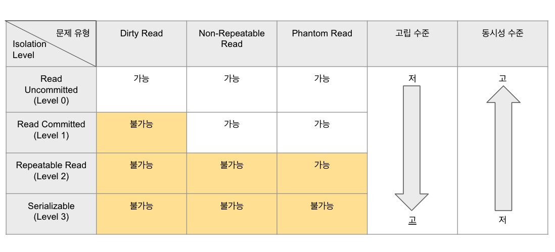 하지만 Non-Repeatable Read와 Phantom Read에 대해서는 발생 가능성이 있습니다.
